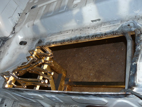 Removed some more surplus bracketry from the car - these were the rear seatbelt reinforced mounting points.