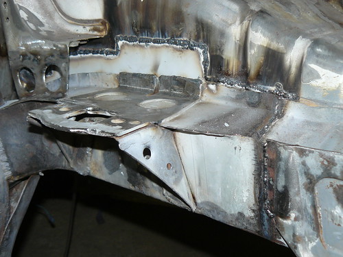 Finally getting towards the end of the near side repairs. The final repair panel is now being welded onto the wheel arch side of the inner wing.