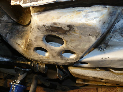 Finished the brakes off tonight. Used a Gunson easy bleed system to push the fluid through the lines and it worked a treat. Used Dinitrol cavity wax inside the gusset repair sections, plugged them back up and painted the outsides with Gravitex. Will get some pictures of that posted up - shown here with the... Continue Reading →