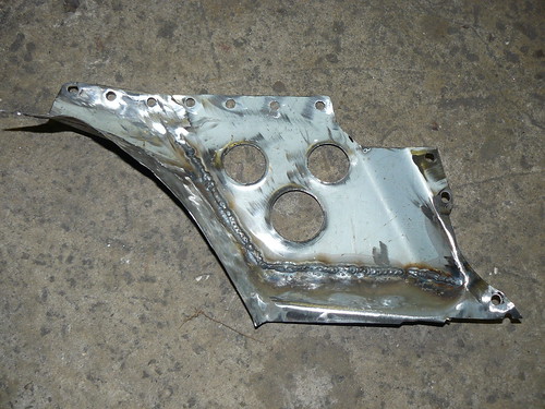 Some progress to report. Finished the chassis rail top and have it ready for fitting. It was a complex shape, but came together okay. Also finished work on the chassis rail gusset. Had managed to get the initial fold lines wrong and the original formed part was about 10mm too wide. Managed to reshape it... Continue Reading →