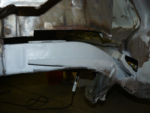 No updates for a few days. but that doesn't mean no progress. Decided yesterday that a bit more needed chopping out: Cleaned it up with a wire wheel and etch primed it. Started making a chassis rail repair section. Utter PITA having to go under the car everytime and adjustment was made to make sure... Continue Reading →
