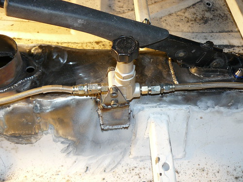 Following on from the end of the week, I fabricated up a wedge plate for the rear of the hydaulic handbrake mounting: Levelling wedge plate mocked up This is now welded in and in primer. Photos to follow at some point. The initial location for the brake bias valve which was to suit the braided... Continue Reading →